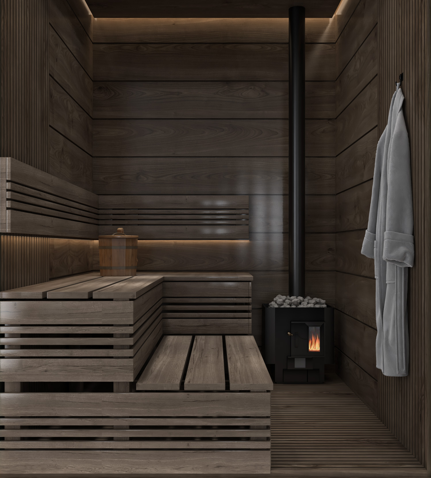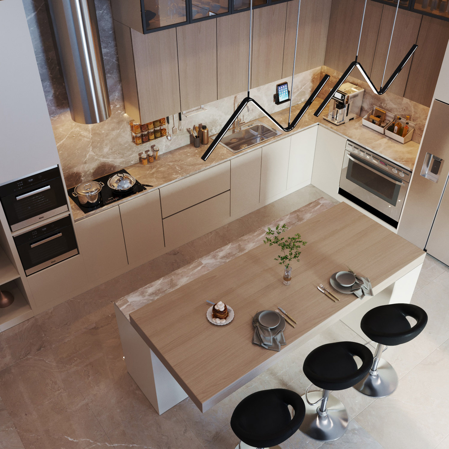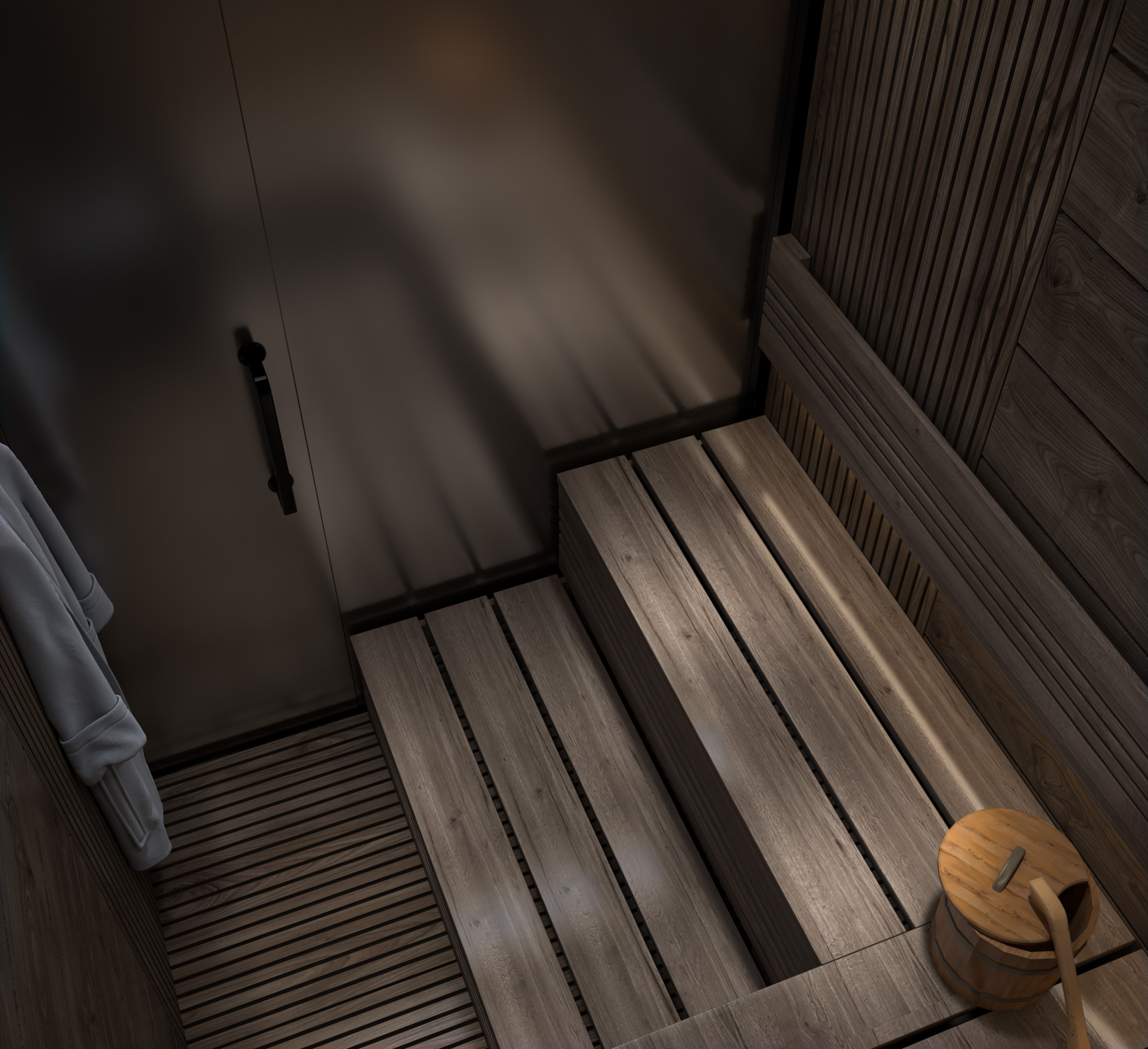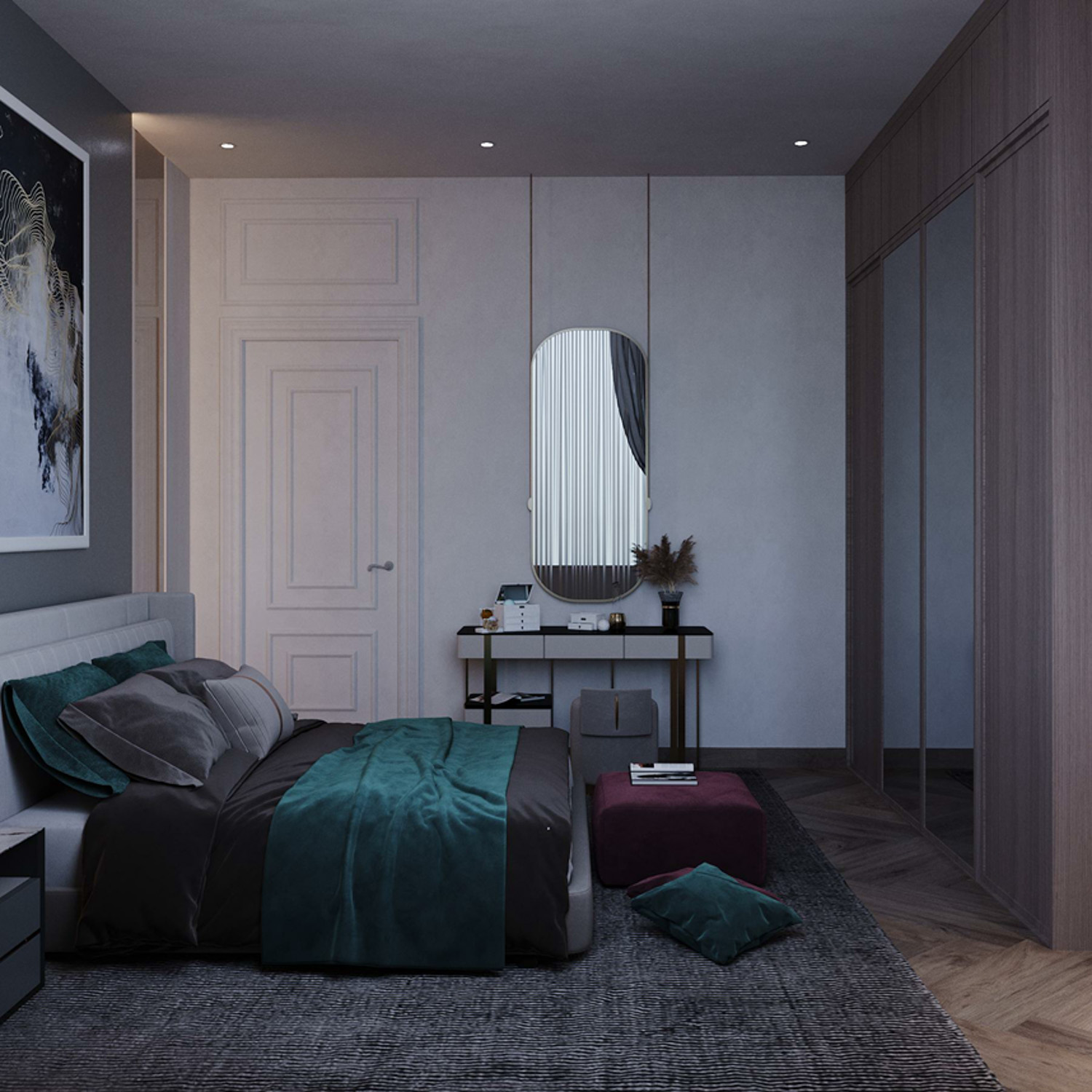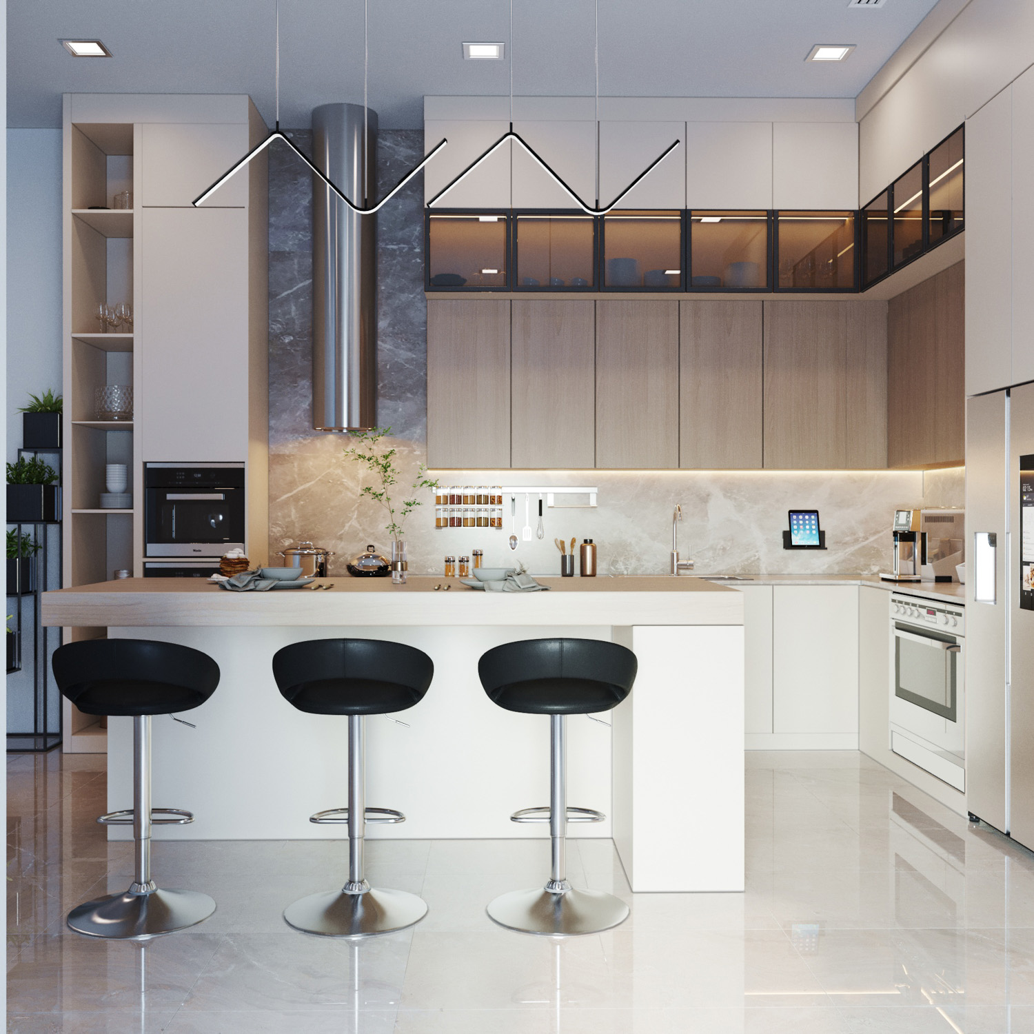 Bedrooms were designed with warm tones, textured walls, and artistic accents, while bathrooms combined marble and wood for elegance. On the top floor, concealed lighting, artwork, and textured walls created a refined feel, with the rooftop and gym featuring wooden furniture and pergolas with greenery for shade and beauty.