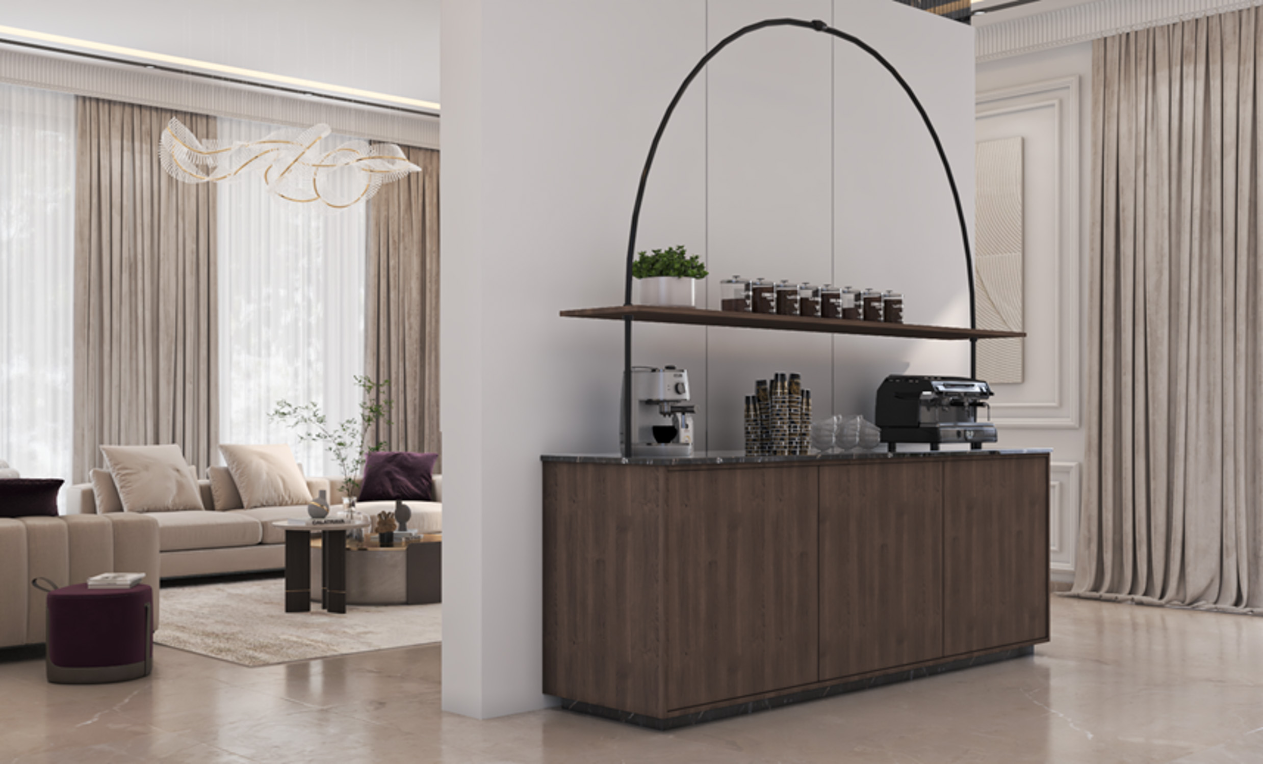 Upon receiving the plans, we modified them to meet the client’s needs, ensuring smooth movement throughout the project. A corridor was added to connect the children’s play area to the family hall without passing through the garden. We also included a coffee station linked to the kitchen and preparatory kitchen, adjusted bathrooms, and redesigned the mechanical and electrical systems.